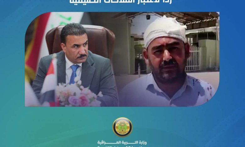 و شرح المكتب الإعلامي تداعيات الحادث الذي حصل لاحد مراقبي المراكز الإمتحانية في قضاء الطوز التابعة الى محافظة صلاح الدين والذي تم إثر كشف اللجنة الفرعية لحالة غش ارتكبها الطالب، مؤكداً بان وزير التربية شدد بان تكون الشكوى باسم الوزارة منعا لاي تنازل يحدث مستقبلاً ولكي ينال المعتدي الجزاء العادل ، ومن الجدير بالذكر ان الجبوري أعلن في وقت سابق عن تحمل الوزارة مسؤولية الدفاع عن ملاكاتها من المعتدين في كل زمان ومكان